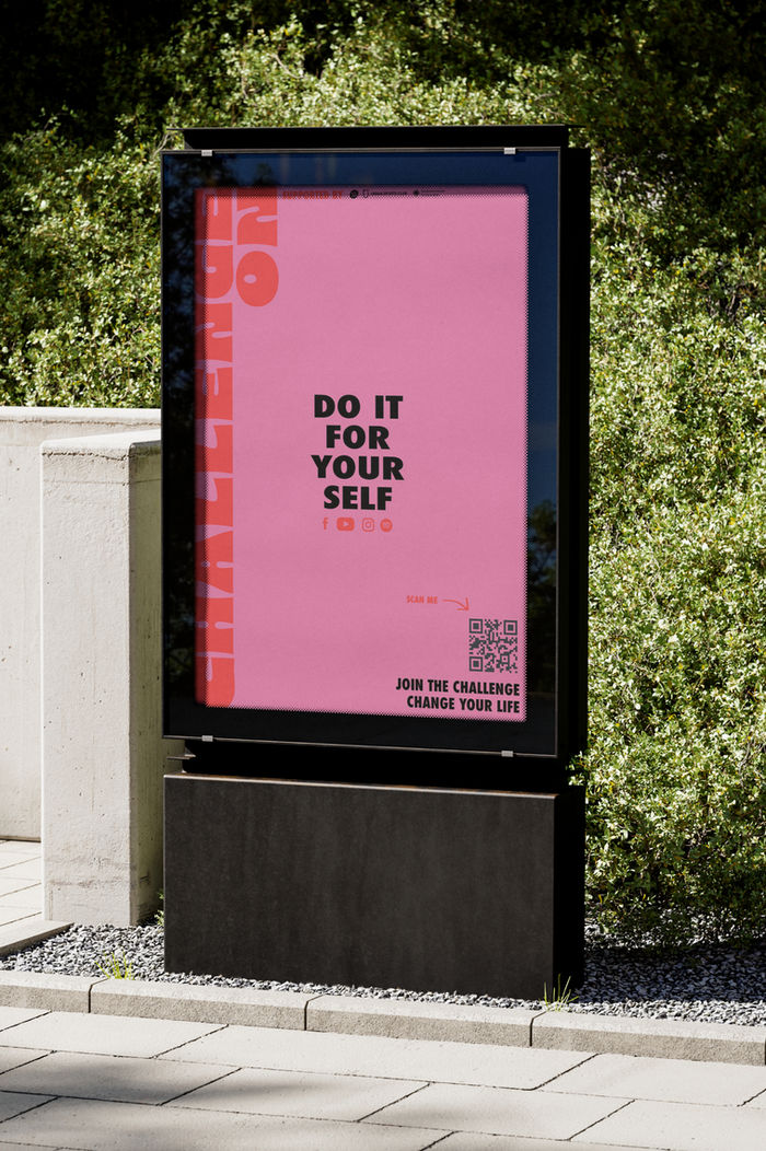 Challenge on offers a preventative solution to combat stress in everyday life. Flyers and posters promote the monthly challenges and are designed to attract the attention of passers-by. The posters are distributed in high-traffic locations such as shopping centers, parks and public places as well as in schools, participating companies and universities. Eye-catching colors and graphics as well as short and concise statements aimed at the target group create a clear message.motivation, creativity and integration are the focus of this project.